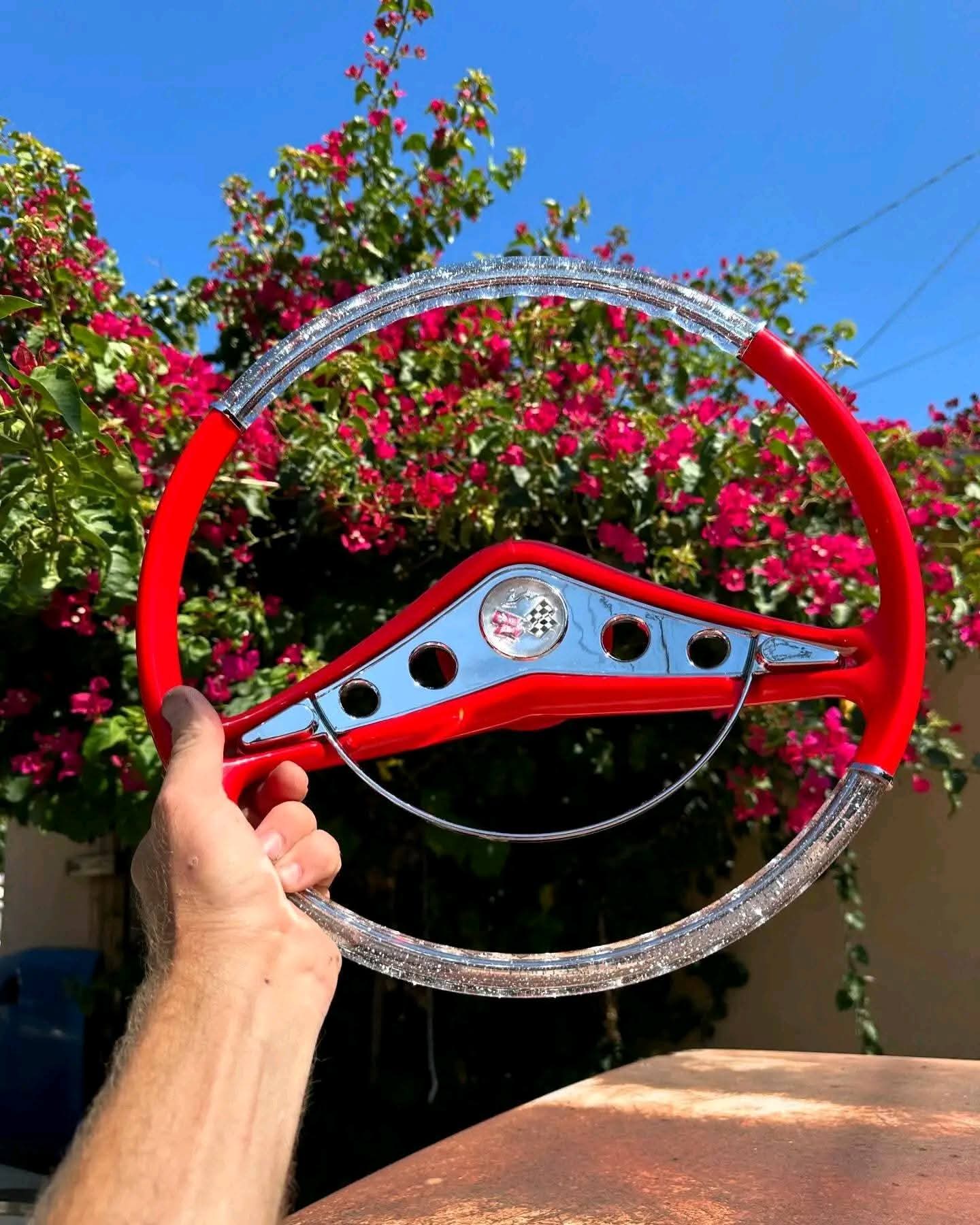 1959 Chevrolet Impala Red Steering Wheel, a stunning piece that merges vintage authenticity with premium craftsmanship. Designed to perfectly complement the timeless elegance of the ’59 Impala, this steering wheel brings both style and functionality to your driving experience.